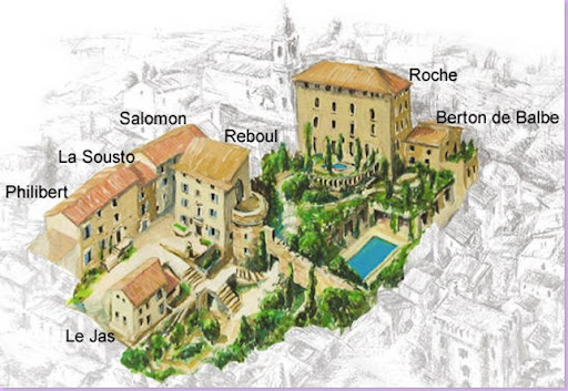 The Maison Reboul with vistas to the valley. I love the courtyard with the grass growing between the stones. So, so charming!