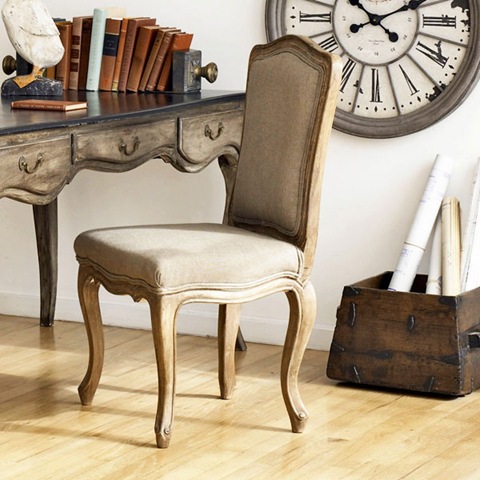 Wisteria's new French styled chair is one of my favorites - a bargain at just $250. The desk is new too. I love the faux antique station clock - $150.