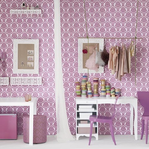 And last: Brocade Home recently began carrying wallpaper. Since this color, peony, is impossible to find anywhere, BH must be selling it by the truckload. Every teenaged girl client of mine is wanting lilac, mauve, or purple these days. It's the hottest hue going.